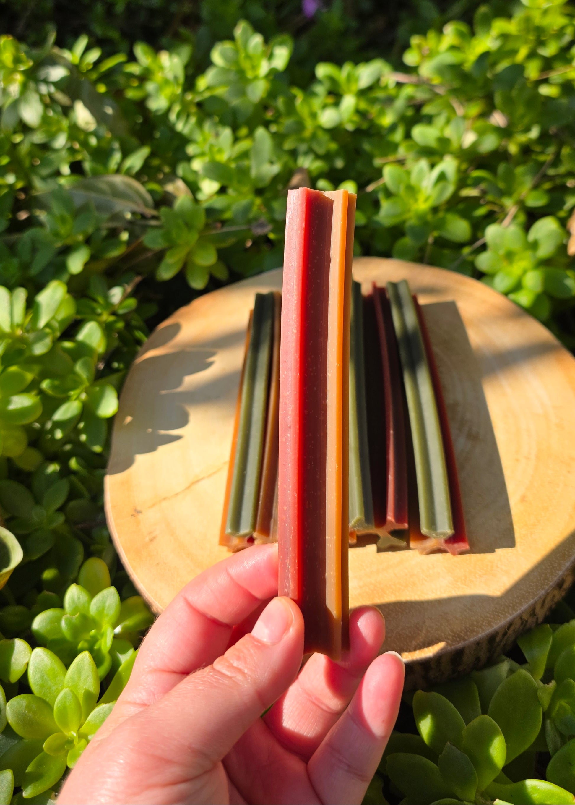 Pea starch , sweet potato starch , vegetable glycerine, Flaxseed oil , mint, chicken powder.